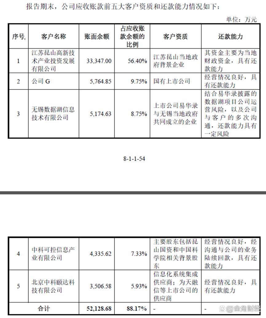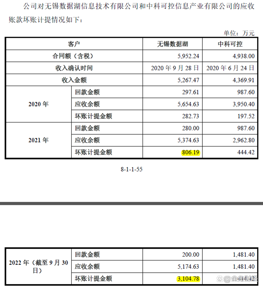 寒武纪称,经公司多次沟通,无锡数据湖在2022年共回款200万元,截至2022年9月末应收账款余额5174万元,回款仍具有一定风险;