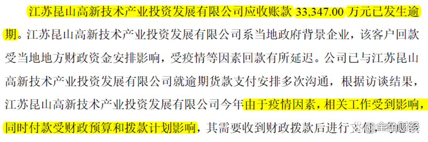目前,最大头的昆山高新3.33亿应收账款已发生逾期。