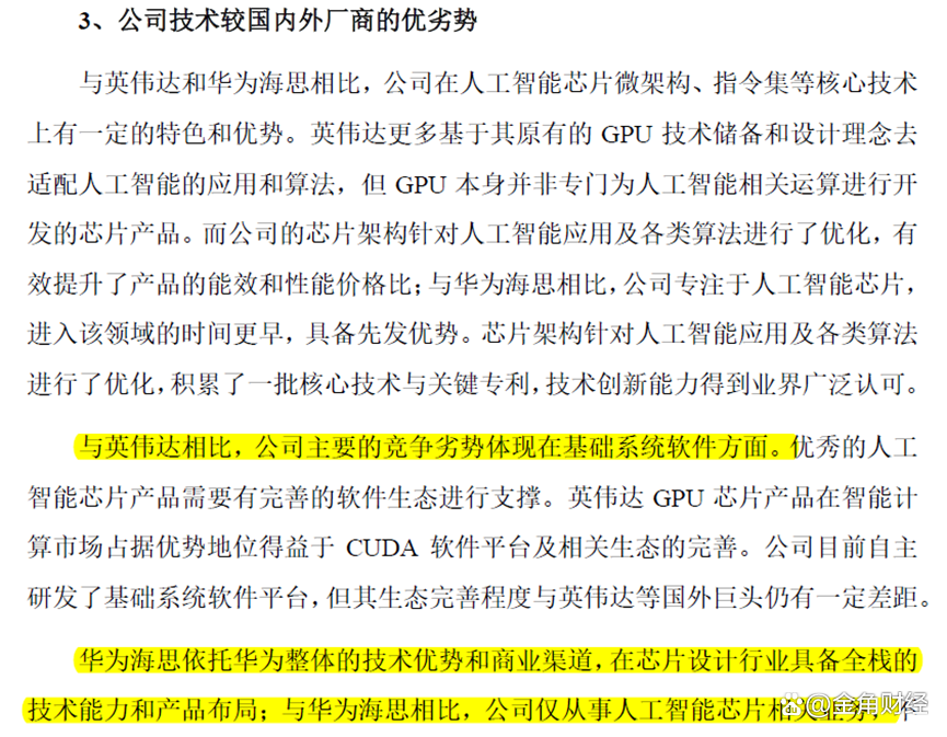寒武纪表示,与英伟达相比,竞争劣势体现在基础系统软件方面: