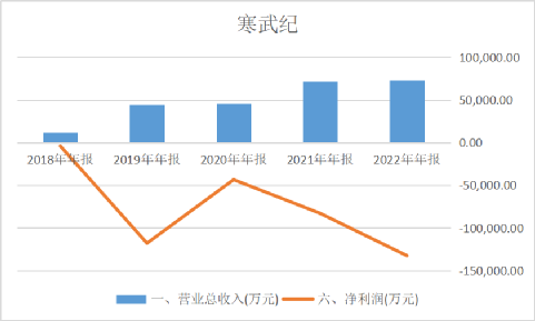 从2017年至2021年,寒武纪分别亏损3.807亿元、0.41亿元、11.79亿元、4.34亿元和8.25亿元。算上2022年,寒武纪已连亏6年,累计亏损超过41亿元。
