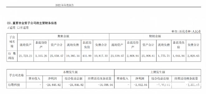 寒武纪2022年年报披露了行歌科技的经营情况