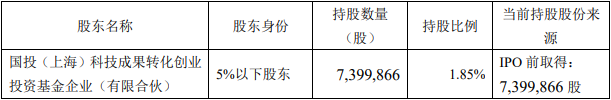 本次减持计划实施前,国投创业基金持有公司股份7,399,866股,占该减持计划披露时公司总股本(400,814,650股)的1.85%。