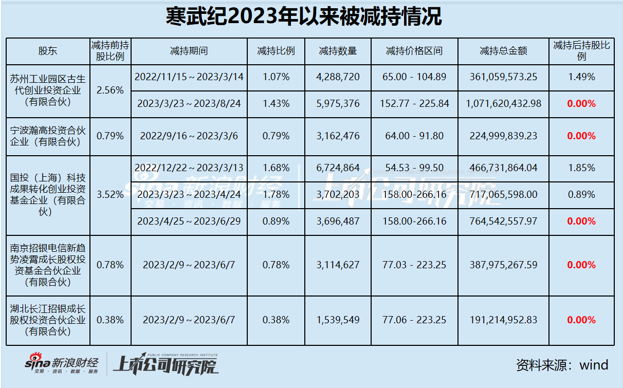 2023年以来,寒武纪遭多个大股东“清仓式”减持。