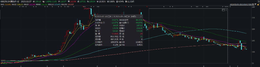 今年三季度,寒武纪股价累计下跌34.07%,截至9月最后一个交易日,寒武纪收盘价为123.95元。截至今日收盘,寒武纪股价为109.16元,市值455亿元。
