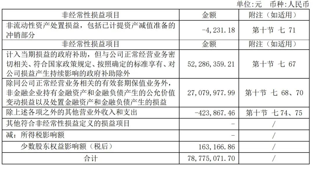寒武纪2024年上半年计入的政府补助为5229万元,除同公司正常经营业务相关的有效套期保值业务外,非金融企业持有金融资产和金融负债产生的公允价值变动损益以及处置金融资产和金融负债产生的损益为2708万元。