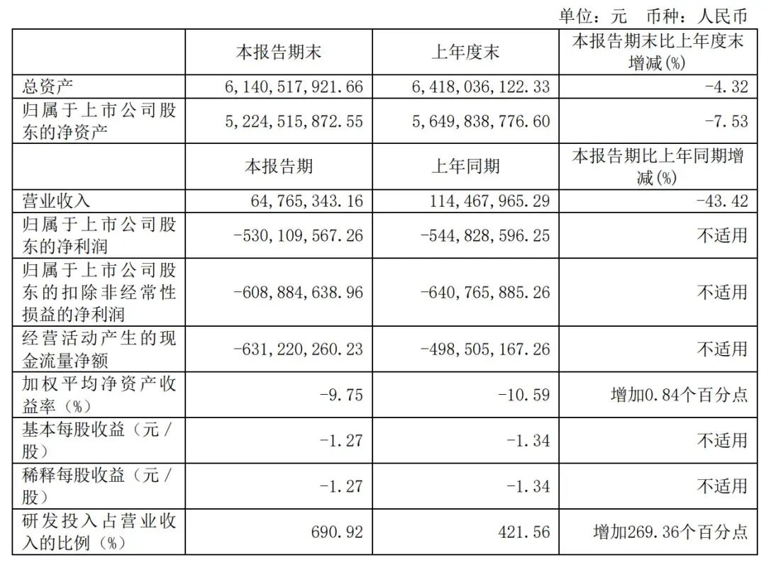寒武纪2024年上半年净亏损为5.3亿元,上年同期的净亏损为5.45亿元;扣非后净亏损为6.09亿元,上年同期的扣非后净亏损为6.41亿元。
