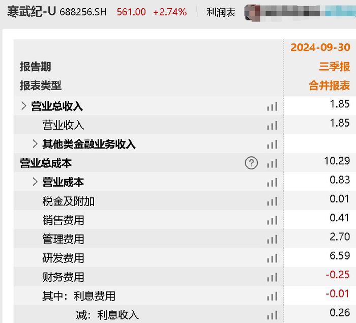 号称国内“AI芯片第一股”的寒武纪,2024年前三季度营收仅1.85亿元,营业成本达10.29亿元,亏损7.28亿元。