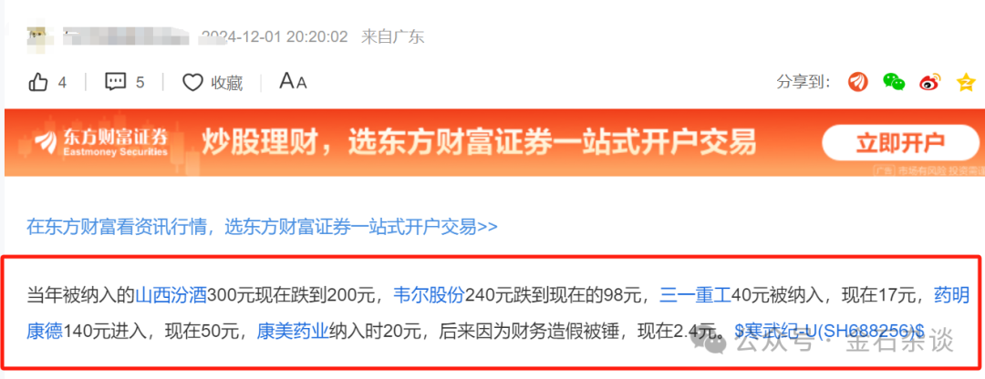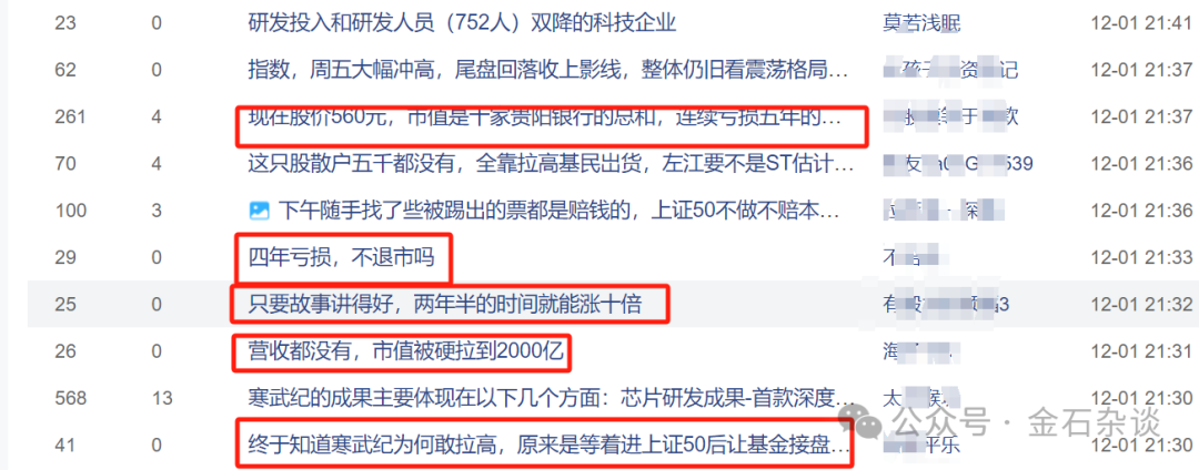正是因为巨额亏损,营收增长乏力,不少股民灵魂发问:“纳入上证50指数,寒武纪配吗”?这不就是让指数接盘吗?甚至有股民在社区平台表示:这不就是收割基民吗?(很多指数、ETF都是追踪上证50指数)