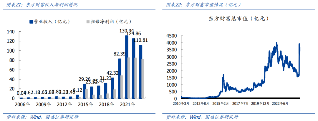综合来看,东方财富2015年营收较2013年提升10.8倍,市值峰值较2014年初提升15.88倍。
