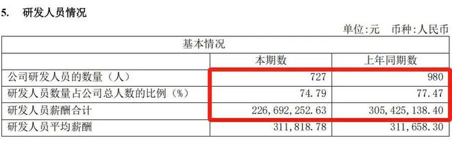 更离谱的是,2023年公司研发人员数量,同比减少了37.6%,只有752人。
