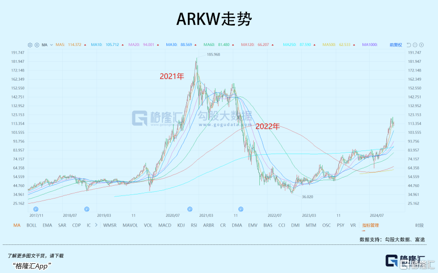 所以,木头姐的基金相比其他ETF,波动率相当高,最典型的一次,就是2021年还被封为华尔街新股神,女版巴菲特,结果第二年就跌落神坛,成为华尔街的笑话。更峰回路转的是,2023年起,随着科技股反弹,木头姐的基金又有再度杀回来的趋势。