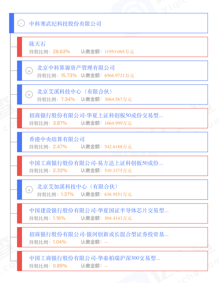 此外,寒武纪的股东阵容强大,不乏众多知名机构和公募基金。这些机构的持仓比例较高,对寒武纪的股价走势构成了显著的影响。