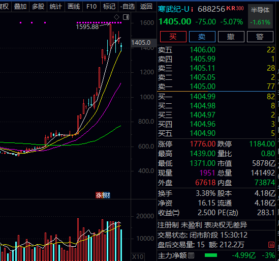今天寒武纪跌了超过5%,或许部分基金已经开始调仓了。