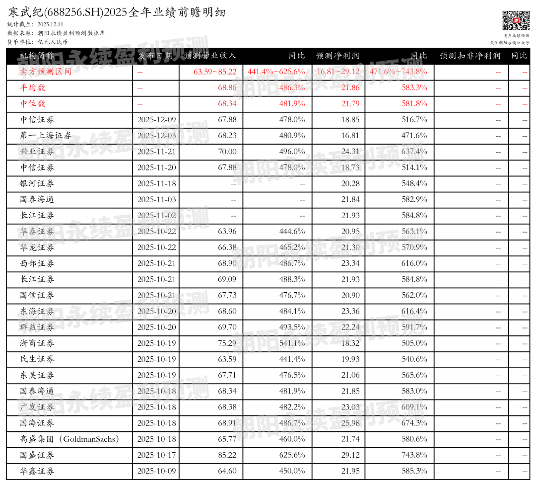 截至2025年12月11日,根据朝阳永续季度业绩前瞻数据: