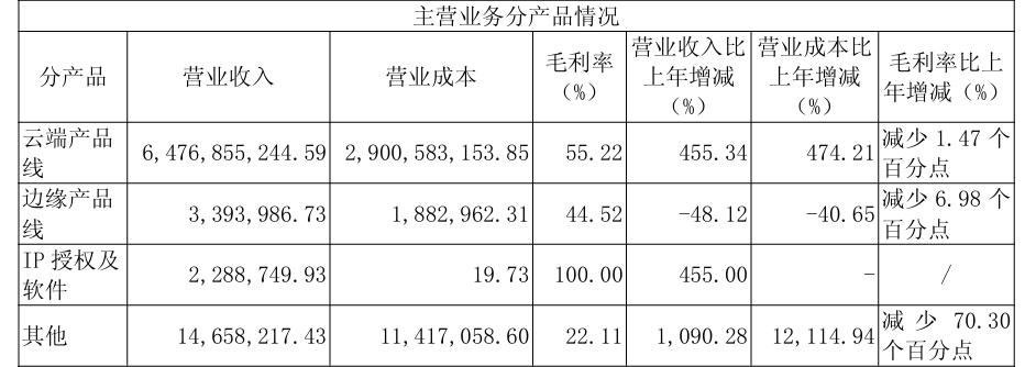 2024年,寒武纪云端产品线实现营收11.66亿元,同比大幅增长1187.78%;2025年,云端产品线的收入同比提升 455%至64.77亿元,约占公司总营收的 99.7%。
