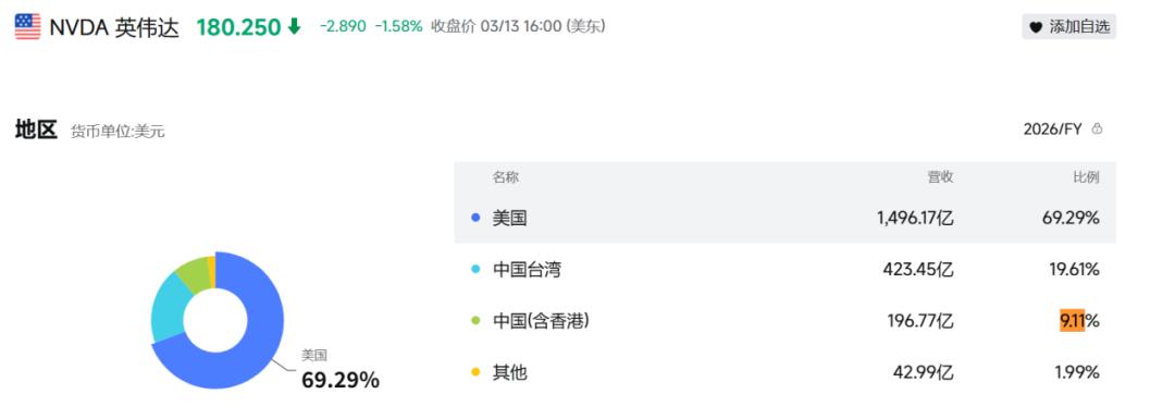 随着芯片国产替代进程加速,英伟达中国收入的占比,从2021年的26.42%下降至2026财年的9.11%。英伟达CEO黄仁勋甚至自嘲道,“英伟达的中国市场份额从95%降到了0%”。