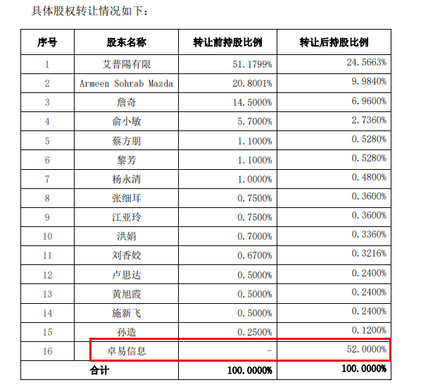 首先,收购完成后,标的公司将成为卓易信息的控股子公司。卓易信息称,由于公司与艾普阳深圳在企业文化、管理制度等方面存在一定的差异,能否与公司现有业务和资源实现有效协同、能否达到整合后的预期效果存在一定不确定性,客观上存在业务整合及协同效应不达预期的风险。