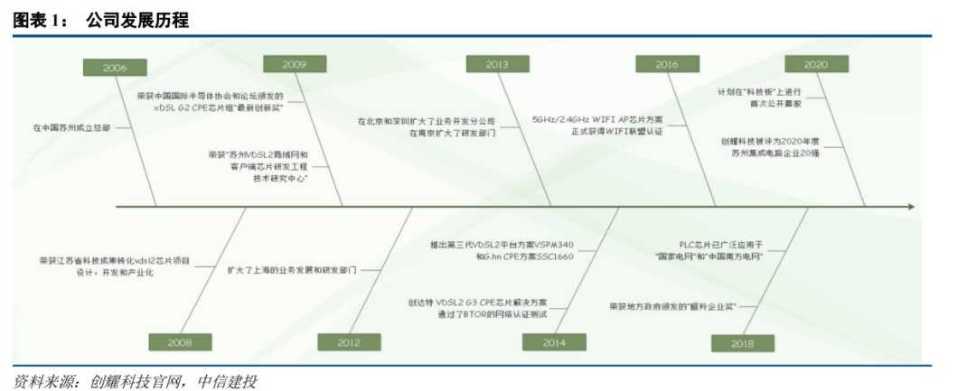 创耀科技成立于2006年,主营业务包括接入网网络芯片与解决方案、电力线载波通信芯片与解决方案、芯片版图设计服务。公司创始人系国际通信技术专家,团队技术实力雄厚,主要产品和技术处于国内先进水平。公司募投项目计划研发高速工业总线互联芯片、智能车载以太网网关系统,进军工业与车载芯片领域。