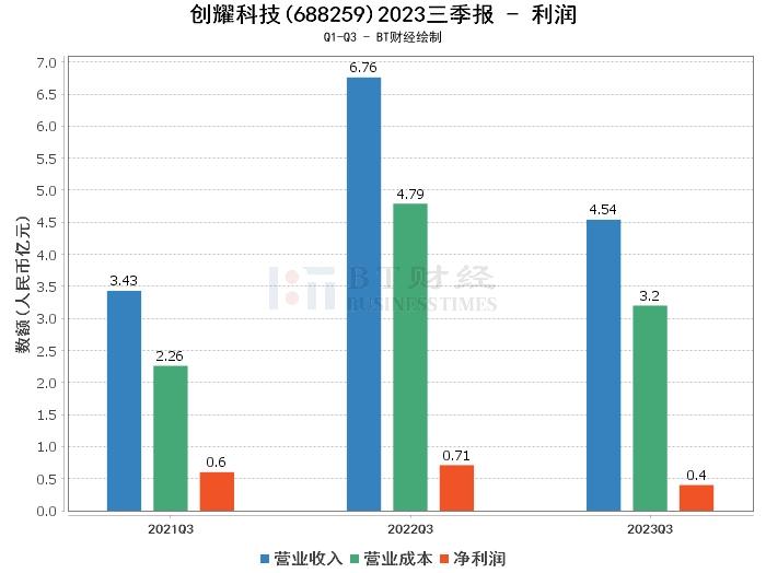 在利润方面,创耀科技2023年三季度的营业收入为4.54亿元,较上年同期的6.76亿元下降32.77%,主要系全球经济周期下行等因素影响,电子信息行业景气度下降,下游客户整体需求有所下降所致。营业利润为3199.52万元,较上年同期的8005.71万元有所减少。净利润为4002.37万元,较上年同期的7120.51万元下降43.79%,主要系收入规模下降影响所致。