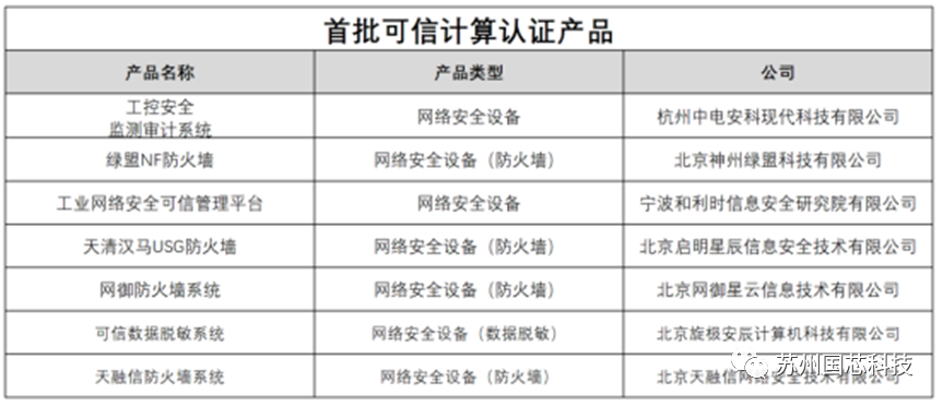 苏州国芯科技股份有限公司针对可信计算市场先后推出了CCM3310S-H可信安全芯片以及CCP903T高速安全芯片,并与北京可信华泰信息技术有限公司合作研发了TCM可信模块,在本次通过认证的7款可信网络安全设备中,有5款采用了国芯科技的芯片。