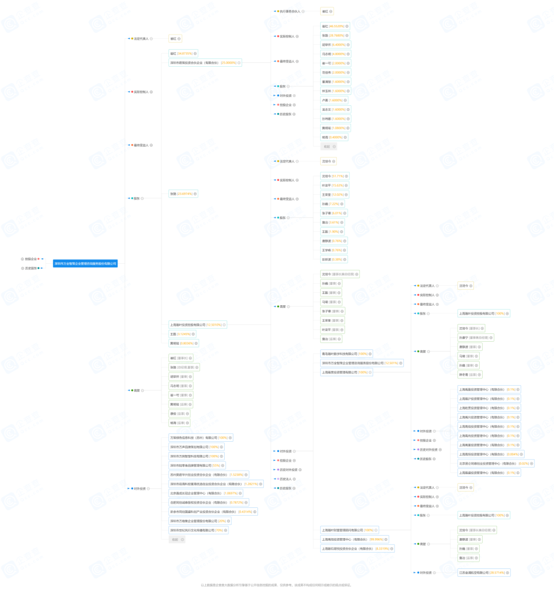股权穿透显示,万全智策现有六家股东。自然人崔红直接持股34.87%,由其担任第一大股东的深圳市君策投资合伙企业(有限合伙)(简称:君策投资)持股25%,合计实控比例为46.51%。