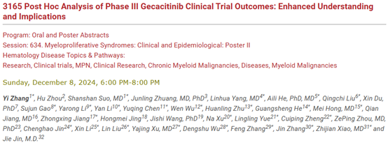 第66届美国血液学会(ASH)年会于2024年12月7日-10日在美国圣迭戈举行。ASH年会作为全球血液学领域规模最大、覆盖疾病范围最广的国际盛会,每年都会吸引全球各地知名血液学家前往参与,分享全球最前沿的研究进展和突破性临床数据。在本次ASH年会上,浙江大学附属第一医院张仪博士作为第一作者发表了一项国研创新JAK/ACVR1双抑制剂吉卡昔替尼治疗骨髓纤维化(MF)的III期临床试验事后分析。