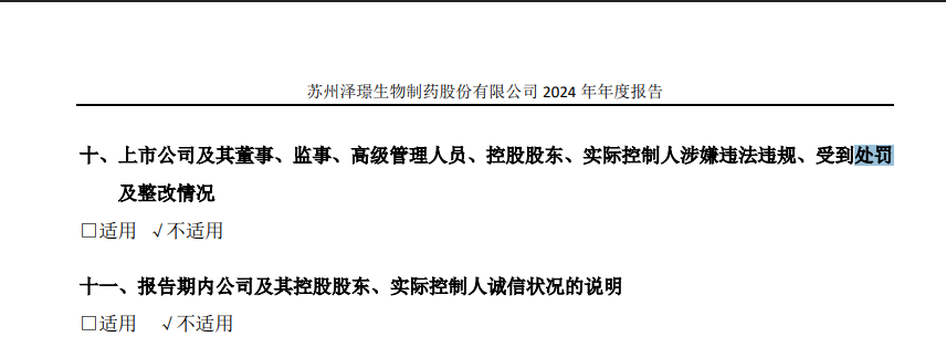 对于“上市公司及其董事、监事、高级管理人员、控股股东、实际控制人涉嫌违法违规、受到处罚及整改情况”信披一项中,该公司在年报中选择了“不适用”(即表示没有)。