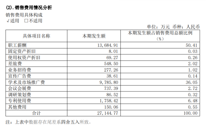 如果从销售费用的构成来看,除了近一半是销售人员薪酬之外,有一项占比近三成的学术及市场推广费用,高达9785万元,这部分的费用业内人士都知道怎么回事。
