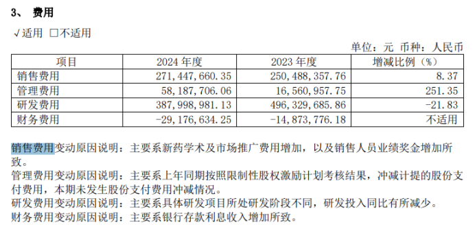 据泽璟制药年报披露,2024年销售费用高达2.71亿元,较2023年的2.5亿元增加了8.37%。