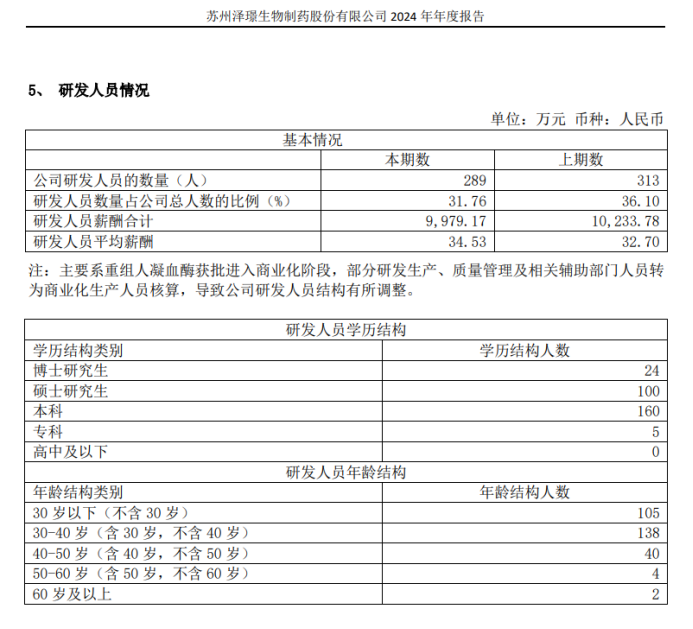 2023年尚有313名研发人员,到了2024年底只剩下289人,研发人员净减少了24人,从研发人员队伍比例来说,减员比例还是较多的。至于2024年3.88亿的研发投入中,有近1亿元是用于研发人员薪酬的,剩下用于新药研发等投入就更可想而知了。