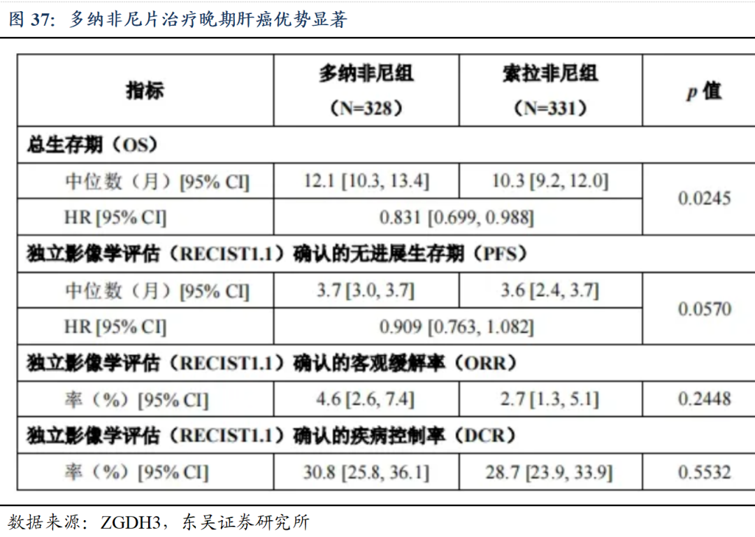 多纳非尼片治疗晚期肝癌优势显著。作为唯一一个单药与索拉非尼头对头临床试验取得优效的晚期肝癌一线治疗新药,与索拉非尼相比,多纳非尼显著延长晚期HCC患者的总生存期;安全性显著优于索拉非尼。