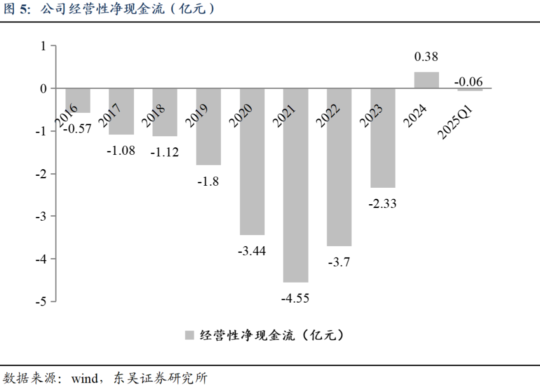 经营性净现金流转正。公司经营性现金流自2021年起逐步恢复,2024年因收到重组人凝血酶商业化合作首付款和里程碑款3.4亿元(2024年内收到2.8亿元),全年经营性净现金流由负转正。
