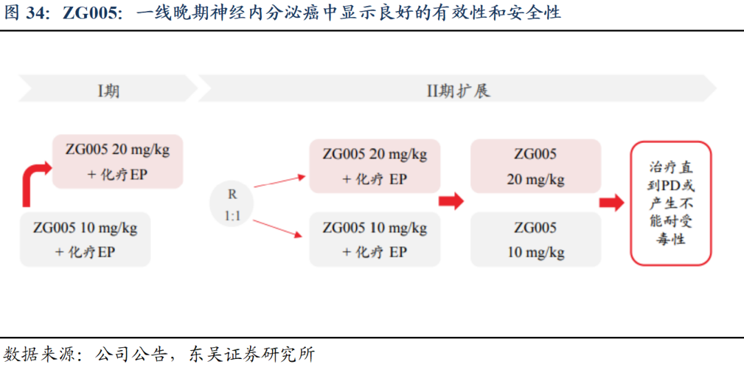 3)ZG005联合依托泊苷及顺铂在晚期神经内分泌癌患者中的安全性、药代动力学特征及初步疗效的I/II期临床研究(ZG005-004)数据及最新进展:在晚期神经内分泌癌的患者中,ZG005联合化疗安全性耐受性良好,显示了良好的疗效,支持其开展进一步的临床研究。