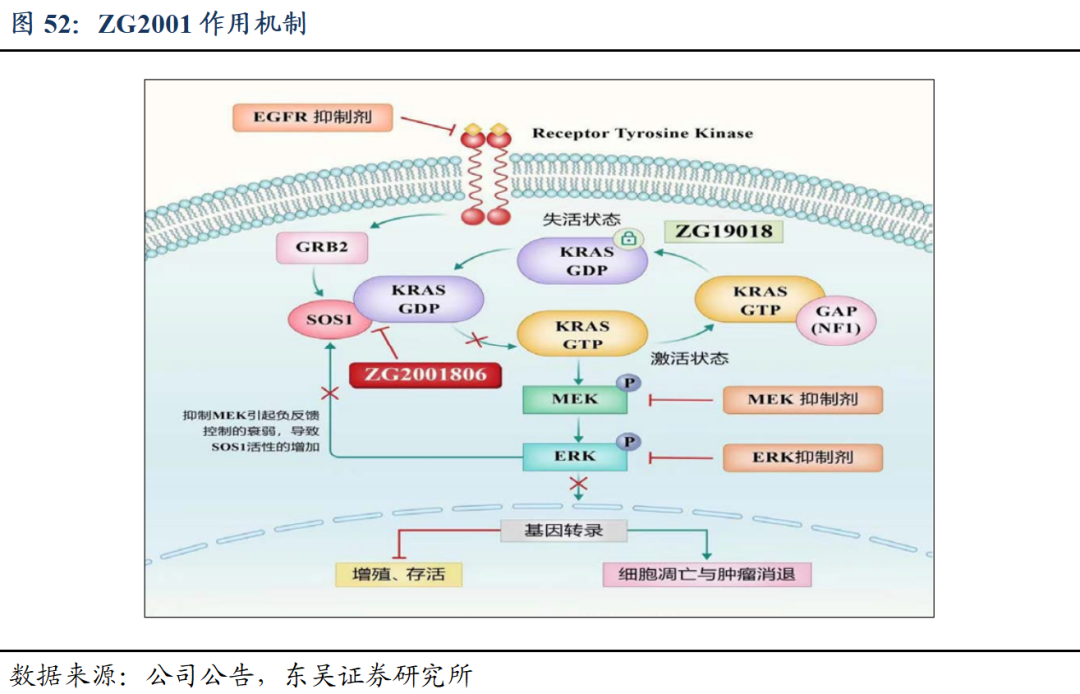 抑制机制:选择性结合SOS1的催化位点,阻止SOS1和非活化的GDP-KRAS结合,抑制GDP-KRAS转变为活化的GTP-KRAS;从而阻断了MAPK下游通路,引起肿瘤凋亡和肿瘤消退。
