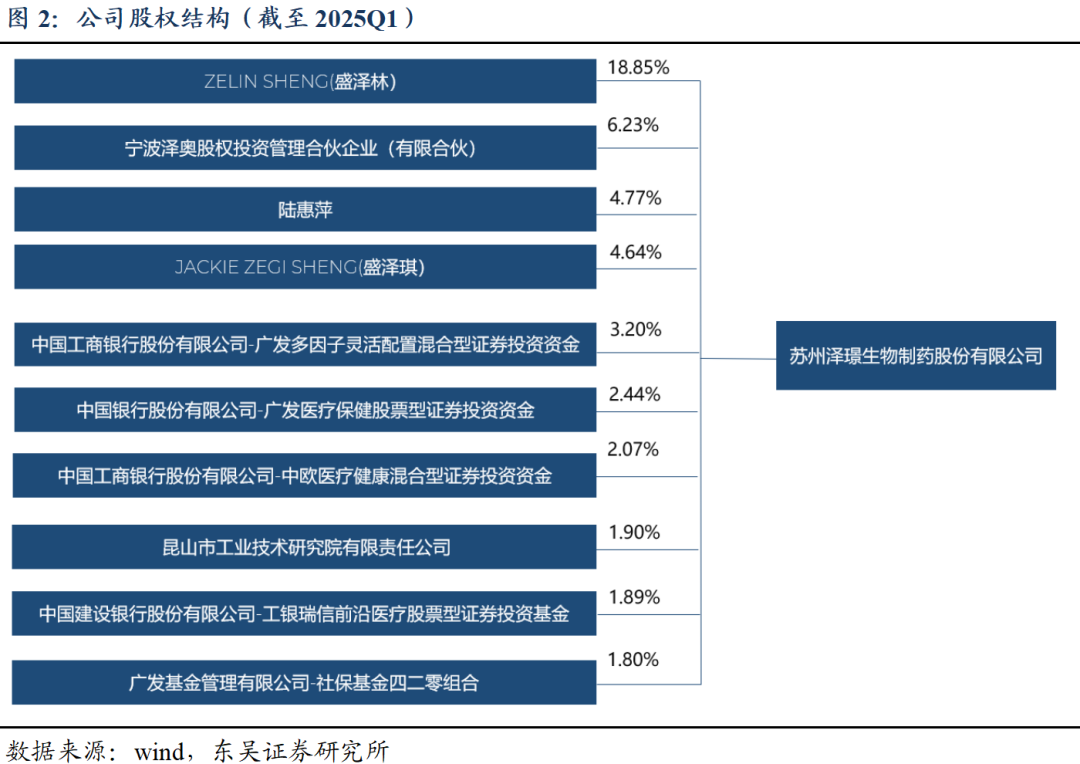 股权结构清晰,实控人为盛泽林及陆惠萍。截至2025年一季度末,两人分别持有公司股权18.85%、4.77%