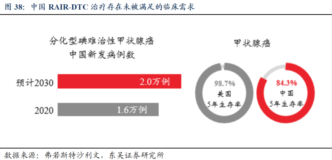 我国RAIR-DTC治疗存在未被满足的临床需求。局部晚期/转移性分化型碘难治性分化型甲状腺癌(RAIR-DTC)患者具有死亡高风险性,10年生存率为10%,平均预期生存时间仅为3-5年。