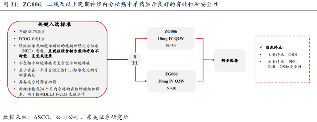 3)ZG006在晚期神经内分泌癌患者中的Ⅱ期剂量扩展临床研究(ZG006-003)数据及最新进展:在二线及以上神经内分泌癌患者中展现出显著的抗肿瘤活性及良好的安全性,支持其在该适应症中开展进一步的临床研究。
