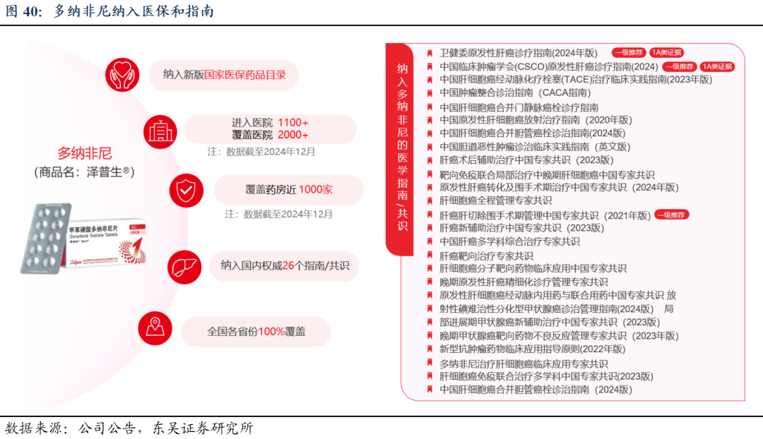 公司积极推动产品商业化,多纳非尼纳入医保和指南,持续扩大市场份额。截至2024年底,多纳非尼两款适应症均纳入国家医保药品目录,实现进院1100+家,覆盖医院2000+家,覆盖药房近1000+家,纳入国内权威26个指南/共识,全国省份100%覆盖。