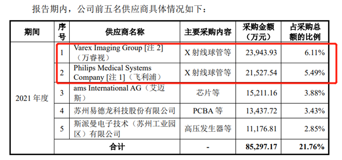 最典型的例子就是CT球管技术,作为CT设备技术含量最高的环节,飞利浦、西门子、GE医疗等巨头均是自供,将技术牢牢的抓在自己手中,而联影医疗的球管则采购的是万睿视和飞利浦的产品,未来依然存在被卡脖子的风险。