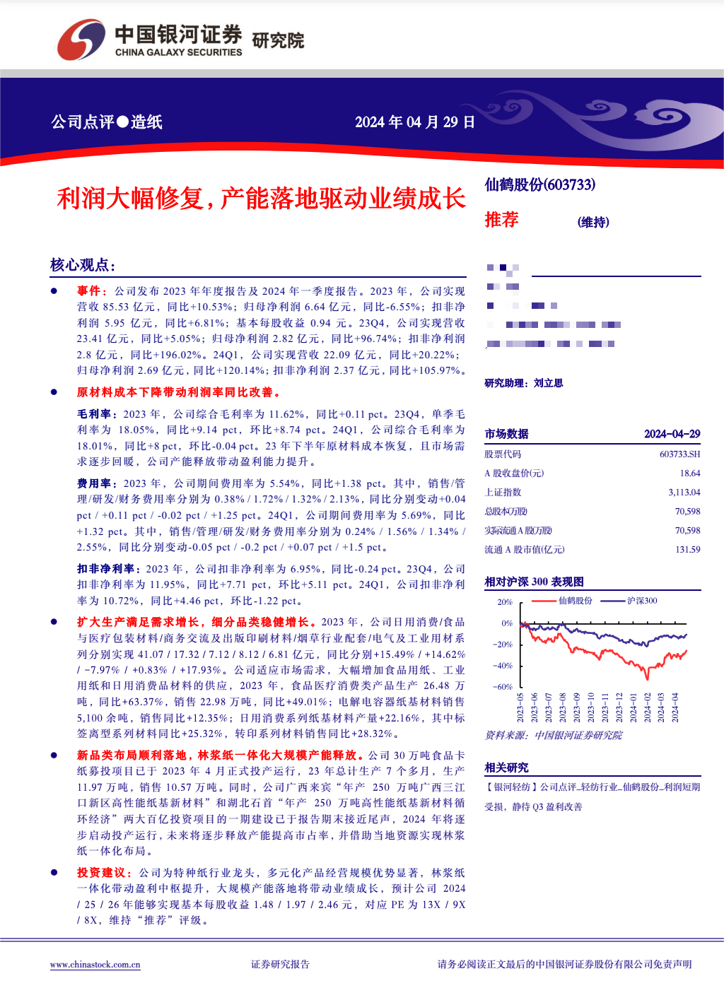 答:公司湖北和广西基地正在按计划有序推进,预计将在2024年底投产部分浆线和特种纸产能。其中,湖北基地预计将在2024年投产4条生产线,其中PM1、PM2已于2024年一季度陆续开机运行,另2条特种纸生产线预计在2024年Q4逐步释放产能;制浆生产线也有望在今年落地投产计划。广西基地预计到2024年底或2025年初投产5条生产线。公司从今年下半年起,预计将有4条特种纸生产线和3条自制浆生产线将逐步完成试机投产。湖北和广西一期项目的推进,将遵循公司“安全、稳步、有序”的原则进行,在2024年有序地释放一部分产能,为公司未来的发展保驾护航。