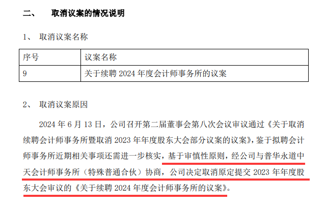 今日(6月14日)晚间,联影医疗发布公告,称基于审慎性原则,经与普华永道中天会计师事务所(特殊普通合伙)协商,决定取消原定提交2023年年度股东大会审议的《关于续聘2024年度会计师事务所的议案》。