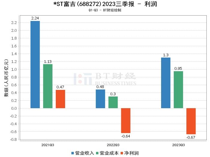 在利润方面,年初至本报告期末,*ST富吉的营业收入为1.3亿元,较上年同期的4469.68万元增长显著。营业成本为9470.95万元,较上年同期的2650.32万元有所增加。毛利率为27%,较上年同期的40.7%有所下降。归属于上市公司股东的净利润为-6680.3万元,归属于上市公司股东的扣除非经常性损益的净利润为-6804.55万元。