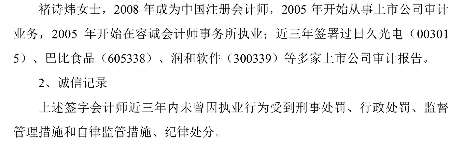 另外,年审机构也同样有压力。监管层要求年审会计师对上述问题发表意见。据悉,公司2023年度审计机构为容诚会计师事务所(特殊普通合伙),签字项目合伙人为褚诗炜,签字注册会计师为董建华,项目质量复核人为熊延森。