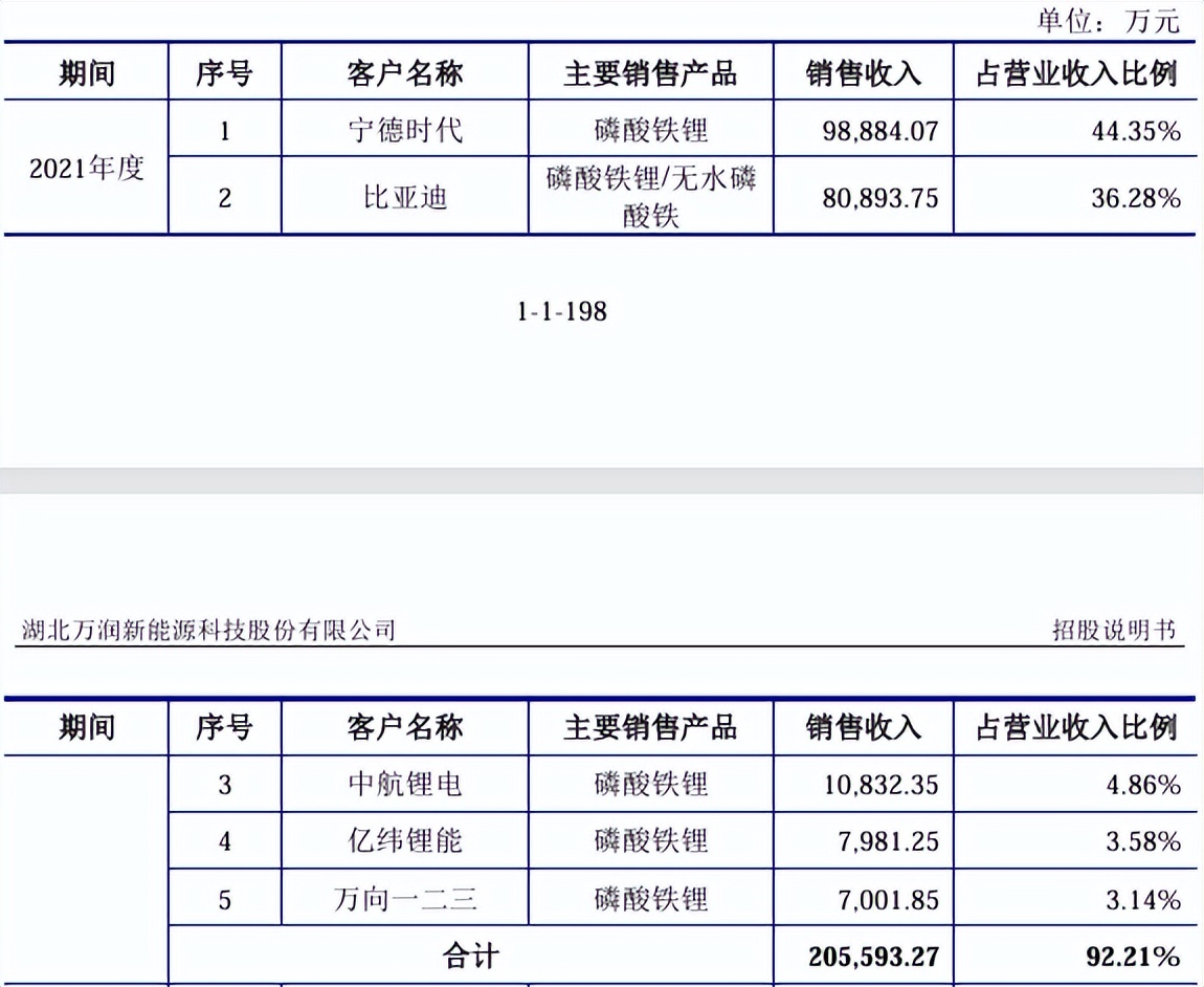 由于商业机密等原因,万润新能上市后的财报里并未披露前五大客户的具体名字,但根据此前的招股书可以推测,前两大客户分别为宁德时代和比亚迪的概率较高。
