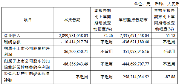 2025年1-9月,公司实现营业收入73.36亿元,同比增长51.18%;归属于上市公司股东的净利润为-3.52亿元,上年同期为-5.98亿元;归属于上市公司股东的扣除非经常性损益的净利润为-4.45亿元,上年同期为-6.13亿元;经营活动产生的现金流量净额2.58亿元,同比下降87.88%。