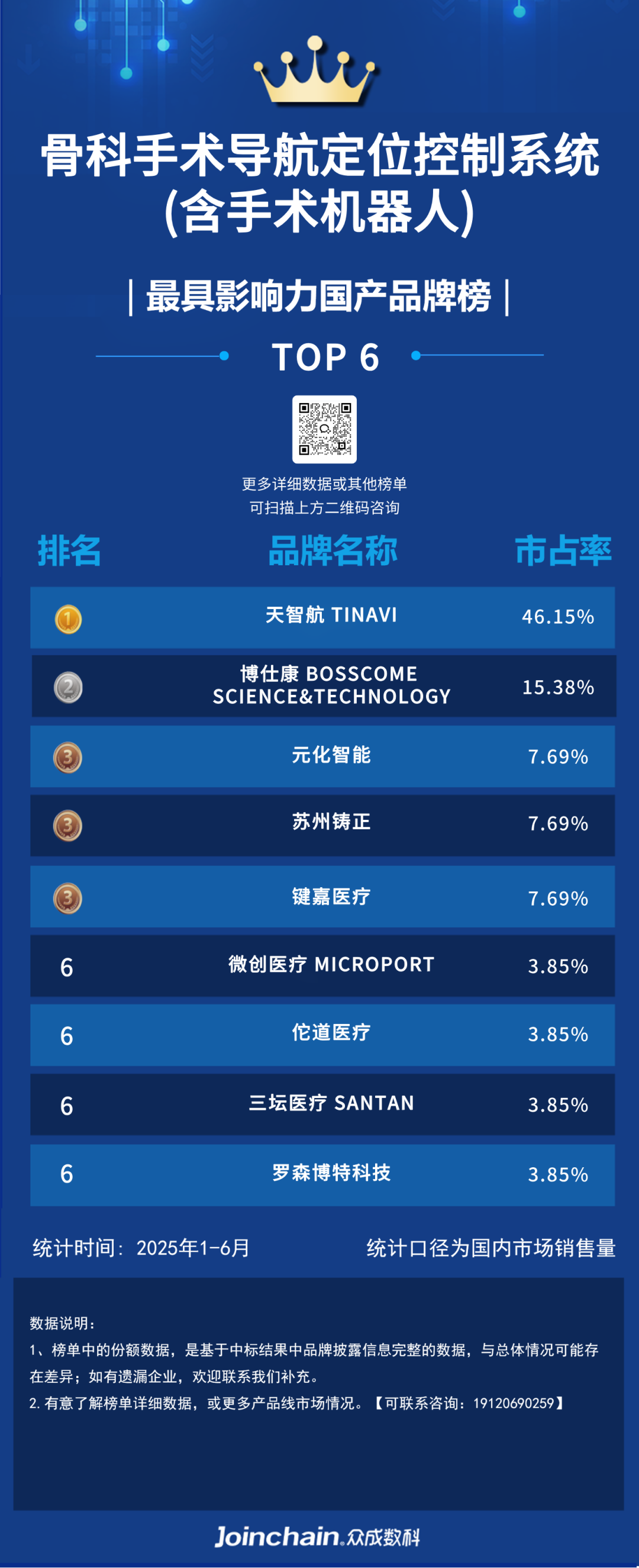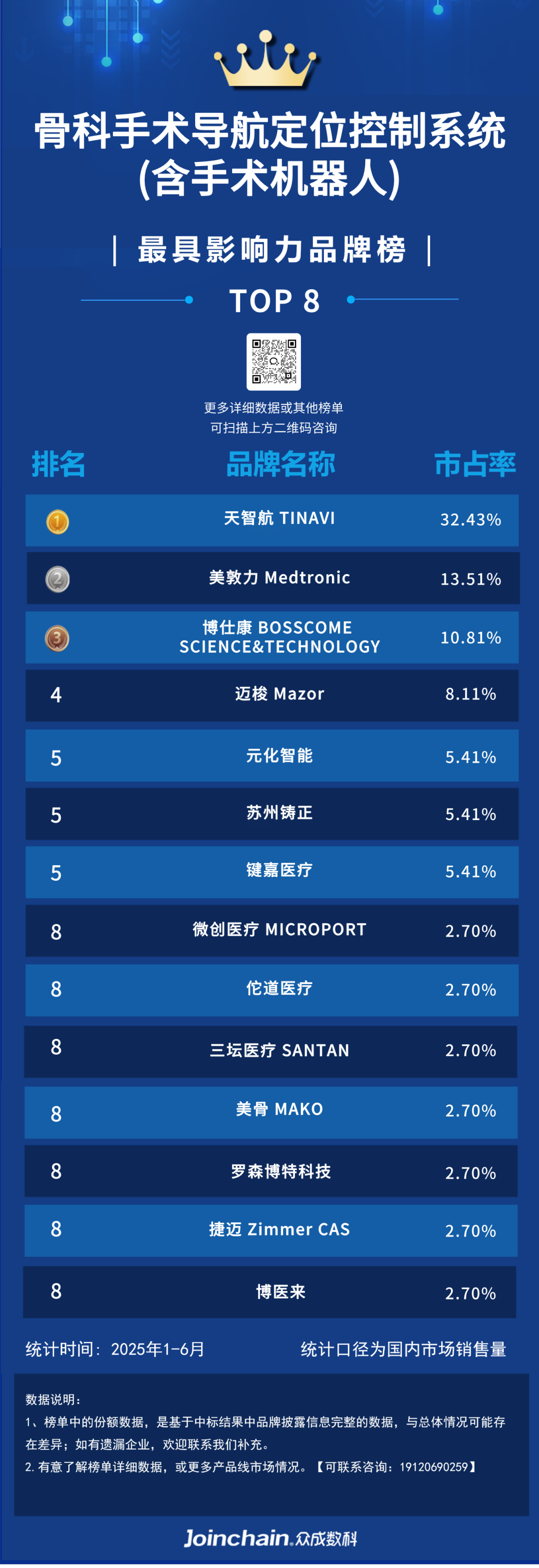 2025年上半年骨科手术导航定位控制系统(含手术机器人)品牌榜