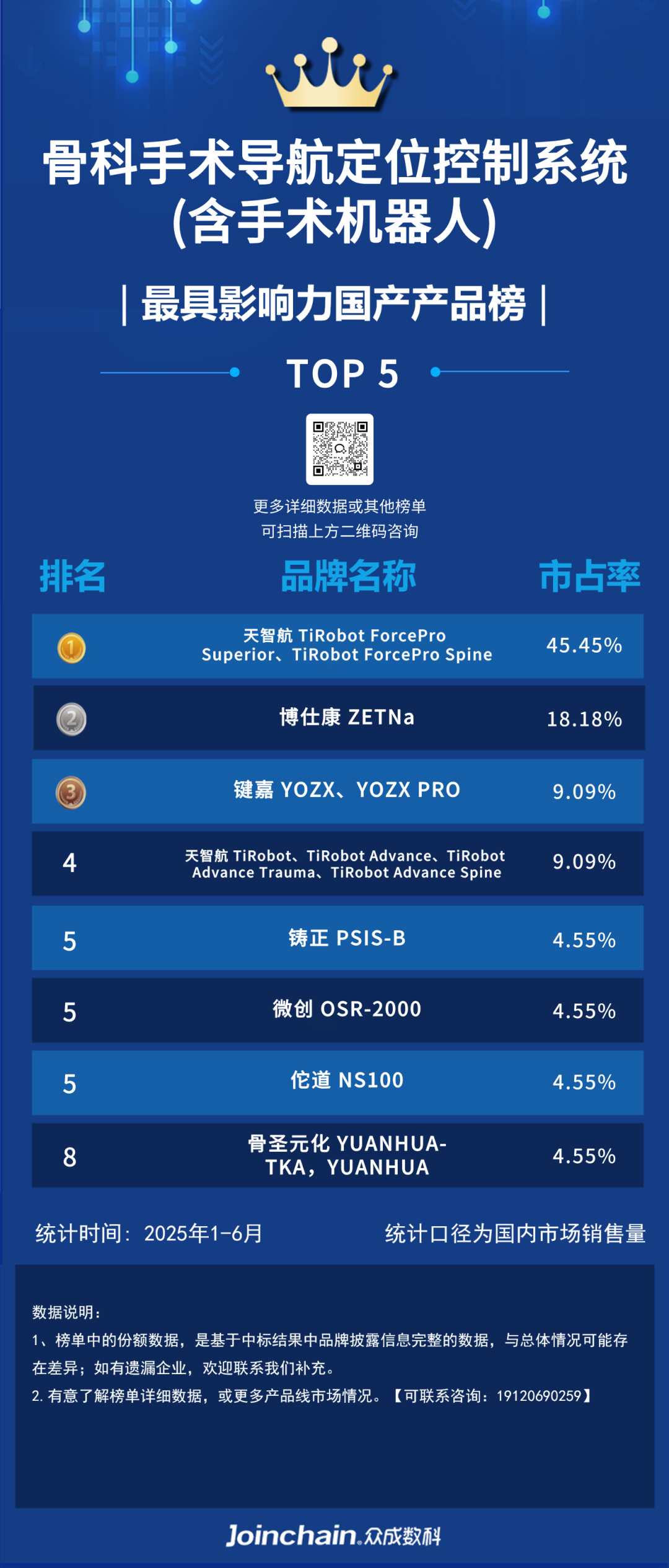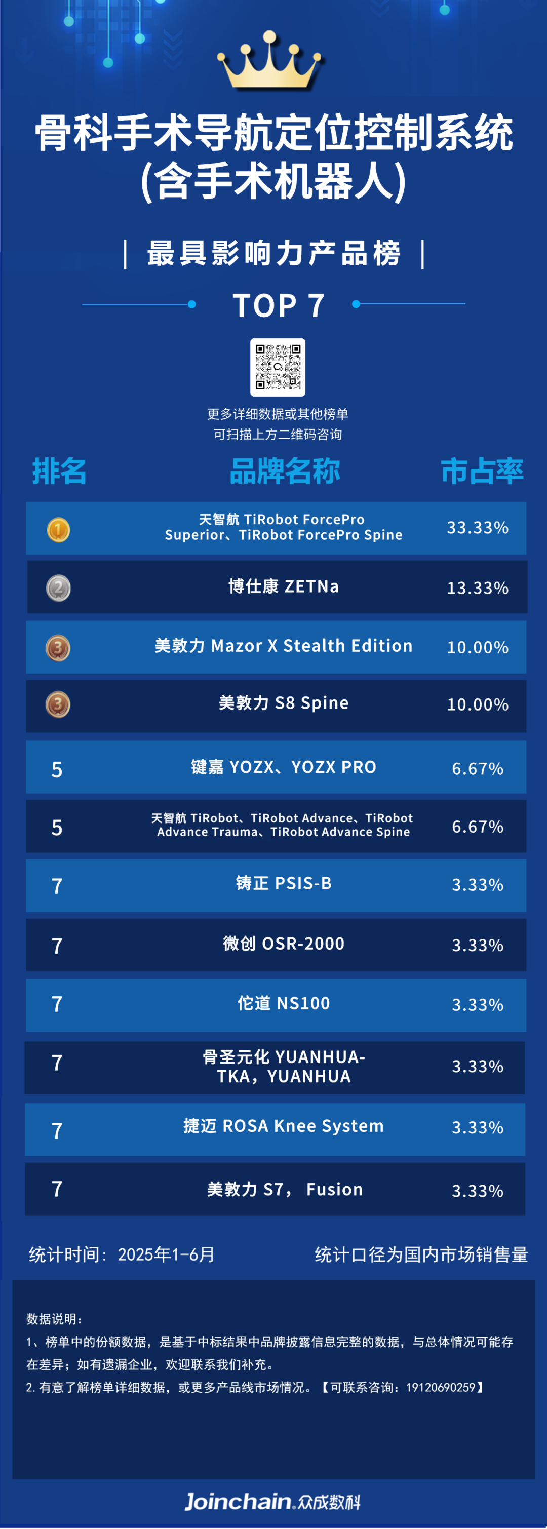 2025年上半年骨科手术导航定位控制系统(含手术机器人)产品榜