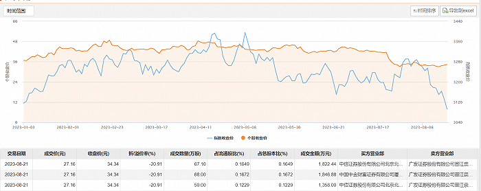 特宝生物8月21日大宗交易成交185.1万股,成交额5027.32万元,占当日总成交额的40.55%,成交价27.16元,较市场收盘价34.34元折价20.91%。