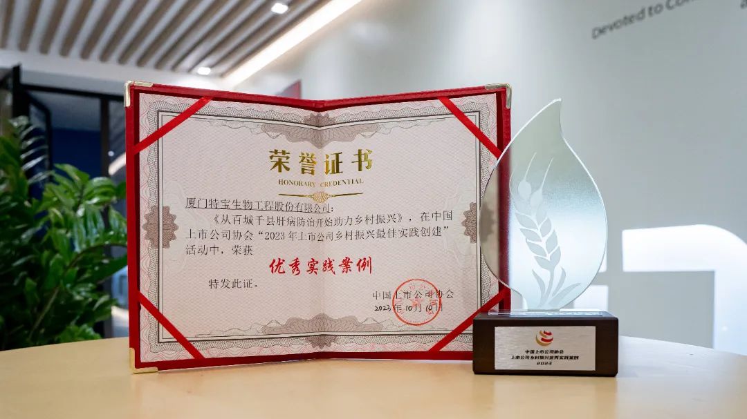 本次荣获“上市公司乡村振兴优秀实践案例”,是社会各界对特宝生物助力乡村振兴领域工作的肯定。未来,特宝生物将继续依托自身在病毒性肝炎治疗领域的优势,持续关注乙肝患者的诊疗情况,积极探索、优化、完善临床治愈路径,助力我国“坚持早预防,加强检测发现,规范抗病毒治疗”的乙肝防控策略,推动中国专家已取得的慢乙肝临床治愈研究成果造福更多慢性乙型肝炎患者,全面助力乡村振兴,书写中国“健康乡村”肝病防治的新篇章。