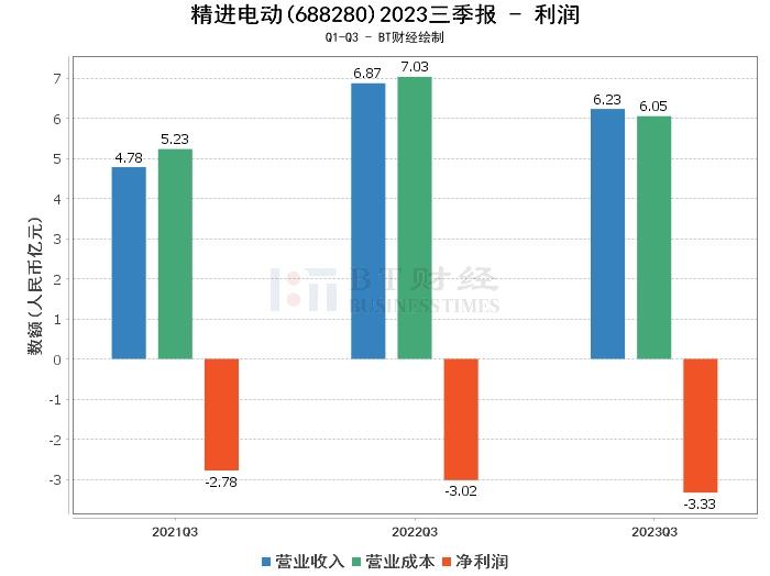 在利润方面,精进电动2023年三季度的营业收入为6.23亿元,略低于上年同期的6.87亿元。营业成本为6.05亿元,较上年同期的7.03亿元有所减少。值得关注的是,公司的毛利率为2.89%,相比上年同期的-2.4%,实现了扭亏为盈。